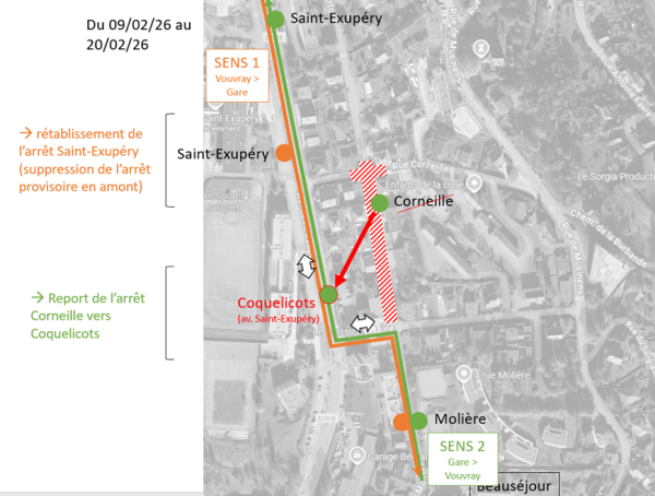 - Direction Vouvray : l’arrêt Corneille est de nouveau desservi.